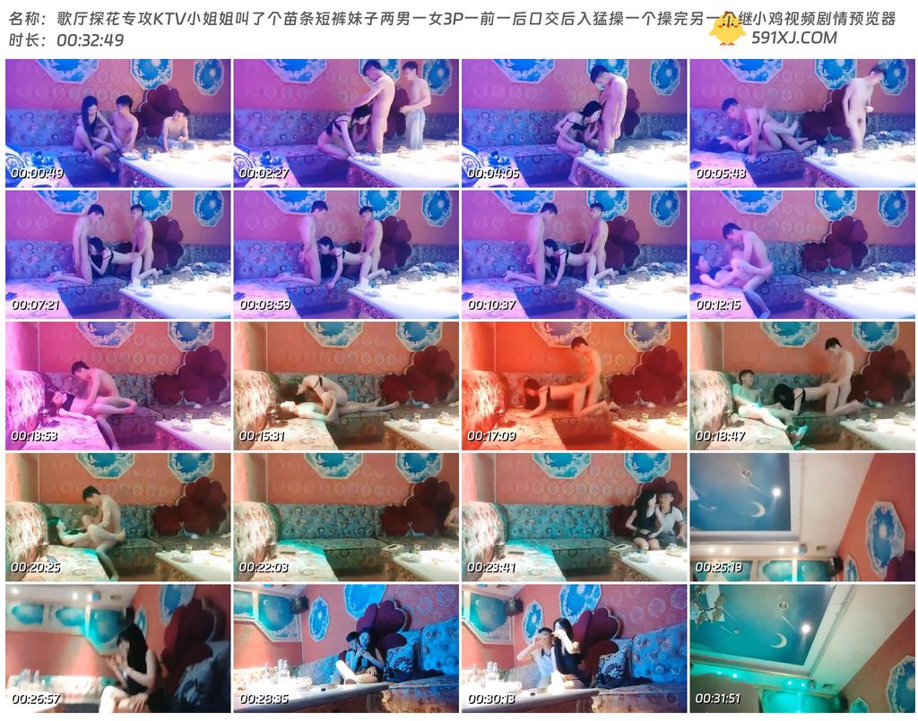 歌厅探花专攻KTV小姐姐叫了个苗条短裤妹子两男一女3P一前一后口交后入猛操一个操完另一个继